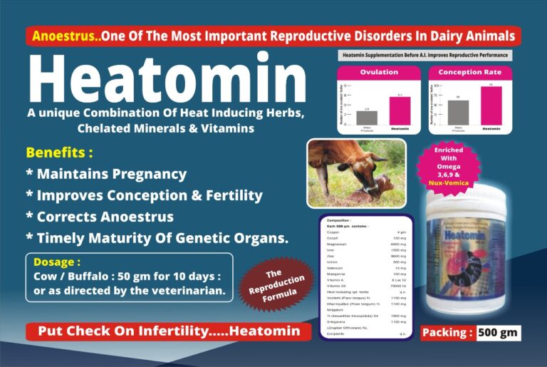 A unique Combinations of Heat Inducing Herbs Chelated Minerals & Vitamins ,Maintains, Pregnancy, Improves Conception & Fertility, Correct Anoestrus,Timely Maturity of Genetal Organs.