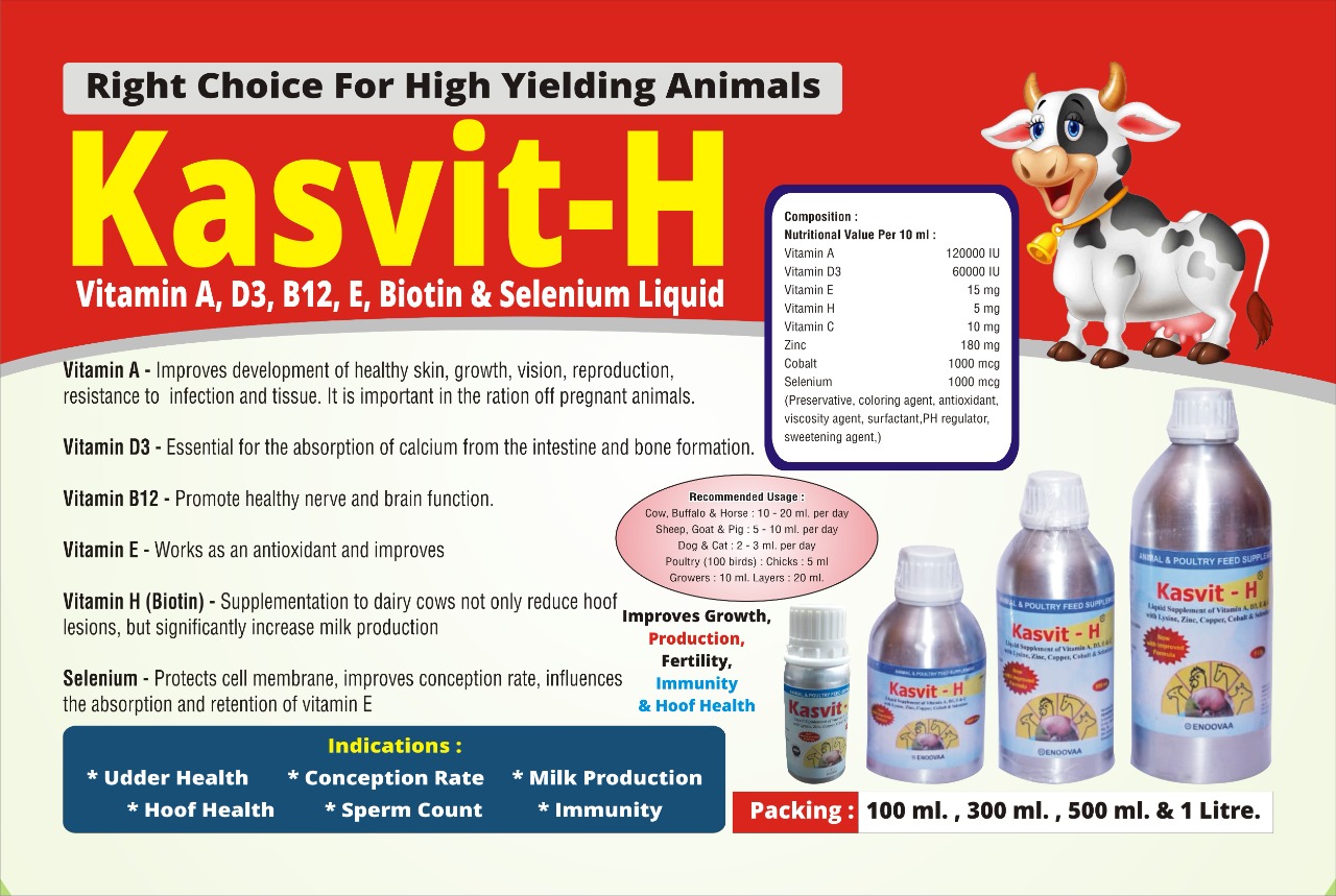 Vit A, D3, E, H Biotin, Vit C, Selenium, Zinc, Cobalt Liq. Right Choice for High Yielding Animals.