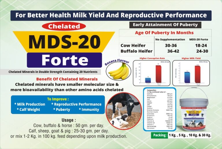 Chelated Minerals in Double Strenght Powder For Better Health, Milk Yield and Reproductive Performance.