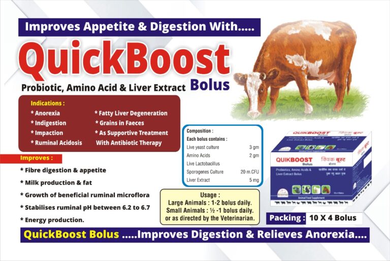 Enhance body resistance & immunity power thus ensure good health of cattles.