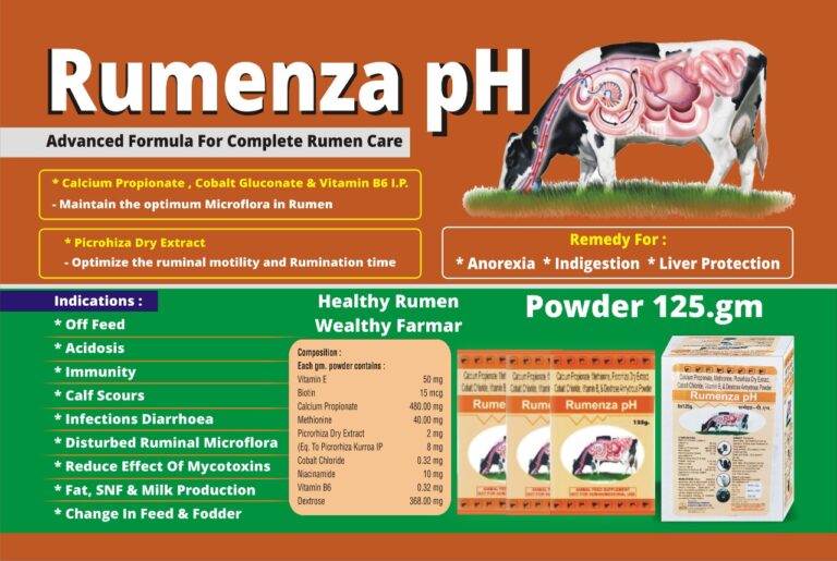 Calcium Propionate, Cobalt Gluconate & Vitamin B6: Maintain the optimum Microflora in Rumen.